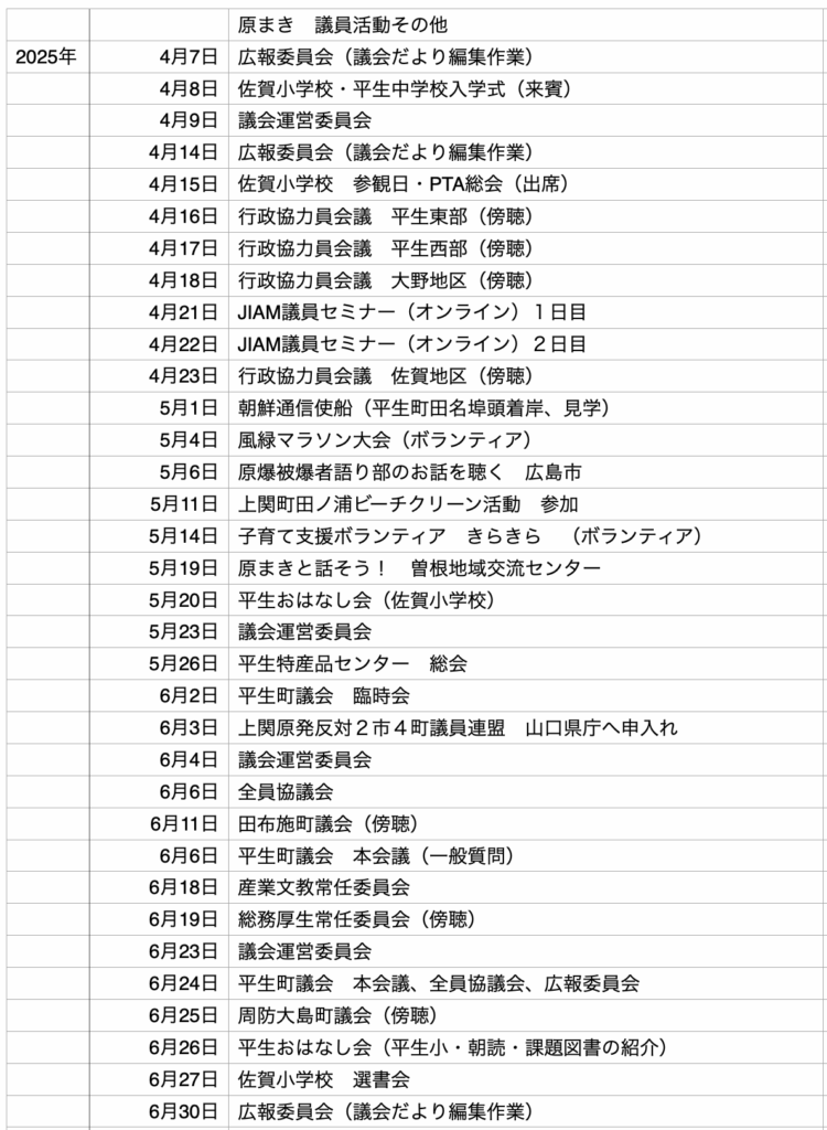 平生町会議員 原 まき の活動報告など